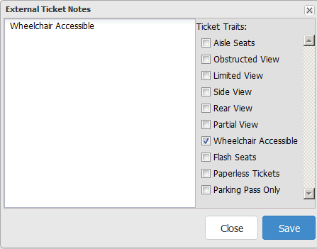 - Once in the external notes tab. You will see an option to add wheelchair accessible seating.